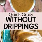 This simple gravy without drippings is still thick and rich and full of flavor. Excellent on turkey, chicken, and many other food, and you can adjust the taste to fit just what you need.