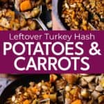This Leftover Turkey Hash is done in under 20 minutes and uses up all those amazing turkey dinner leftovers in one flavor packed dish. With crunchy carrots and crispy potatoes, this turkey hash is comfort food at its best.